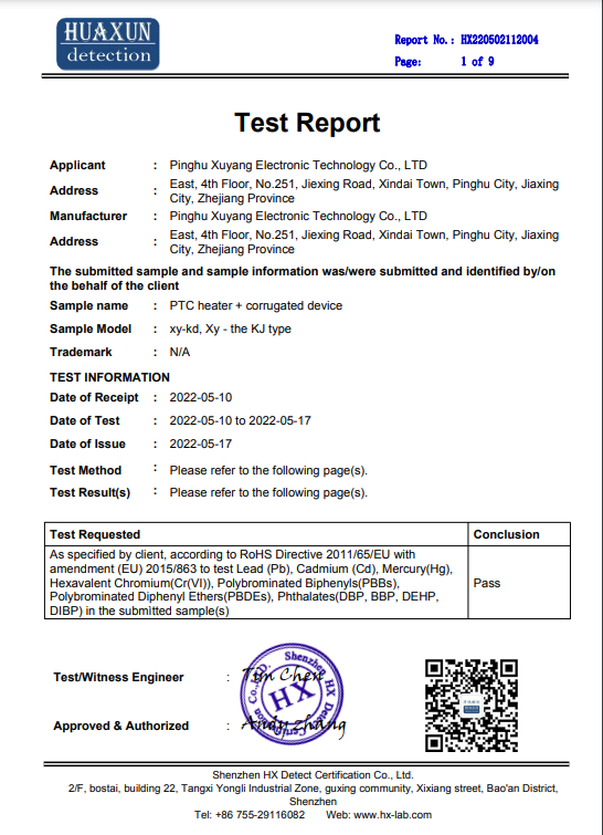 Pinghu Xuyang Electronic Technology Co., Ltd. has been anchored in the field of PTC heating components since its establishment in 2015. With the concept of professionalism, integrity, dedication and innovation, it has grown into an outstanding enterprise in the industry. The company has won the honor of national high-tech enterprises by virtue of continuous innovation and adherence to quality.The company's R&D team is composed of senior experts and professionals who deeply study PTC heating materials and keep up with cutting-edge technologies. From product design conception to large-sc...
